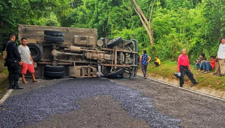 Esta tarde la Policía Nacional Civil (PNC) reporta un accidente de tránsito donde un camión volcó, sobre la calle principal del cantón Pepeishtenango, Suchitoto, Cuscatlán. En el hecho, las autoridades solo reportaron daños materiales.