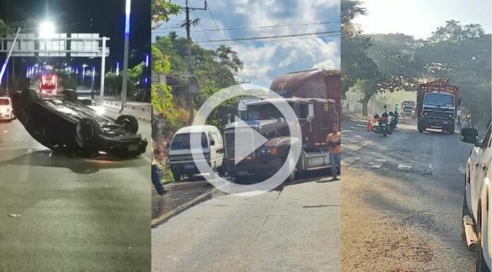 En el kilómetro 10 ½ de la carretera Troncal del Norte, jurisdicción de Ciudad Delgado, en el carril hacia Apopa. Una rastra cañera, un camión de volteo y una camioneta son los involucrados en un múltiple choque, sólo se reportan daños materiales.