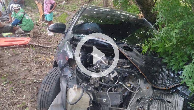Una conductora chocó su automóvil contra un poste del tendido eléctrico, tras dormirse al volante en el km 62 de la carretera que conduce a Ahuachapán. Su acompañante y ella quedaron heridos.