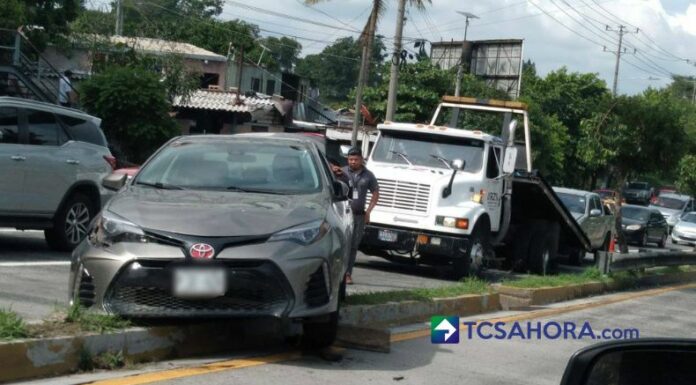 Un accidente de tránsito se reporta en la autopista Comalapa en las cercanías de un cementerio privado. En el siniestro se reportan daños materiales y una fuerte carga vehicular.