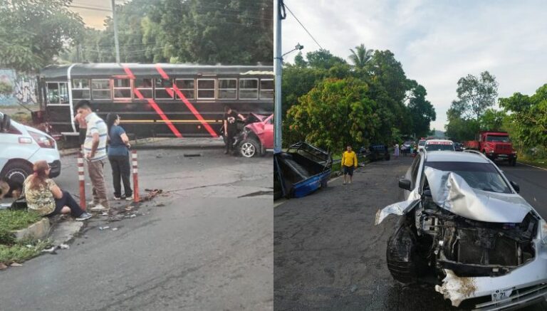 Se registra un aparatoso accidente de tránsito sobre la carretera de Oro, en el sentido que conduce de Soyapango hacia Apopa.