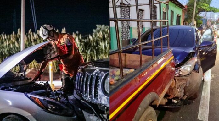 En la calle La Mascota y avenida El Almendro otro choque entre un vehículo y tipo sedan ocurrió en horas de la noche.