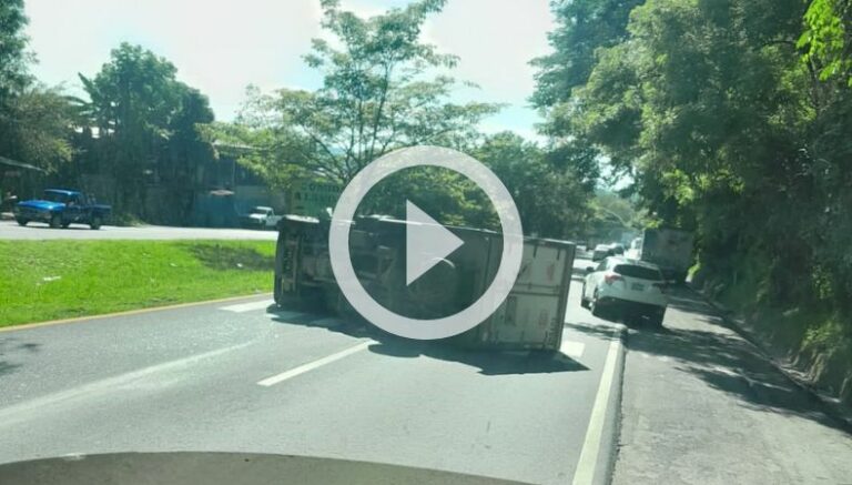 Los accidentes no paran. En esta mañana se reporta un camión repartidor volcado. El percance se localizó en la carretera Panamericana, a la altura de San Rafael Cedros, departamento de Cuscatlán. Afortunadamente, solo se reportan daños materiales.