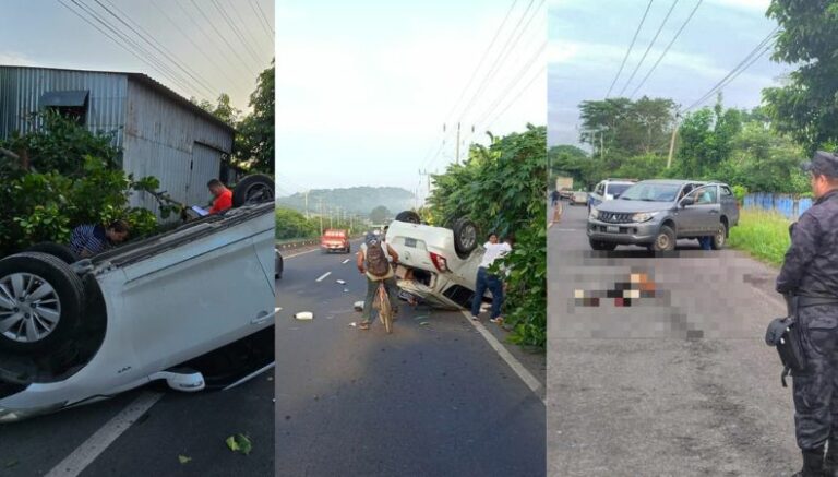 Autoridades registraron un accidente en el kilómetro 152 de la carretera Panamericana, a la altura del cantón Miraflores, San Miguel Centro.