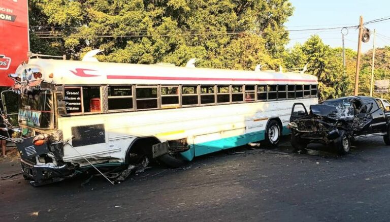 En el kilómetro 32 de la carretera Troncal del Norte, en el sentido hacia Aguilares. La PNC reporta un fuerte accidente de tránsito entre un bus de la ruta 117 y un pick up. Preliminarmente se reportan tres personas lesionadas.