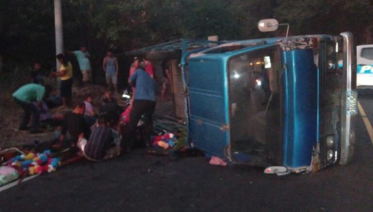 La Policía Nacional Civil (PNC) ha informado que un camión que transportaba 25 personas perdió el control y terminó volcando en la carretera Litoral, jurisdicción del Cantón Mizata, La Libertad.
