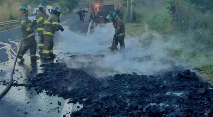 La Policía Nacional Civil (PNC), ha informado a través de su cuenta de X que un camión que transportaba sacos con carbón se incendió en el kilómetro 43 de la carretera Panamericana con sentido hacia San Salvador. Las autoridades han cerrado por completo el paso.