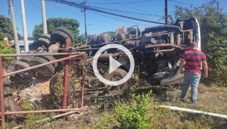 Miembros de Comandos de Salvamento brindaron información acerca de un accidente de tránsito, en el que un camión que transportaba pollos y alimentos para animales sufrió desperfectos mecánicos. De acuerdo con la información preliminar, el problema se generó en los frenos del automotor, lo cual generó que la manguera de aire se reventara.