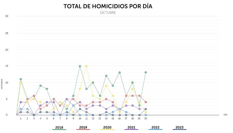 El 20 de octubre en el reporte de las estadísticas de homicidio, la institución policial indica que ocurrieron dos casos: