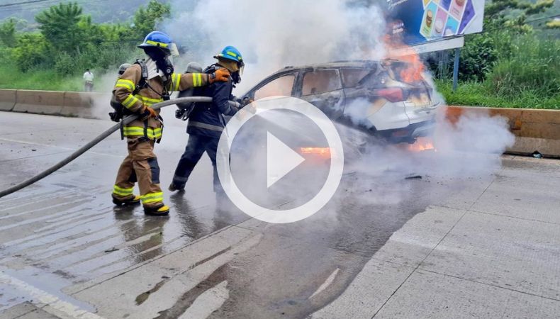 En información de último minuto, equipos de Cruz Verde Salvadoreña reportan un carro en llamas en plena carretera. El siniestro se reporta desde una de las vías más concurridas a estas horas de la mañana.