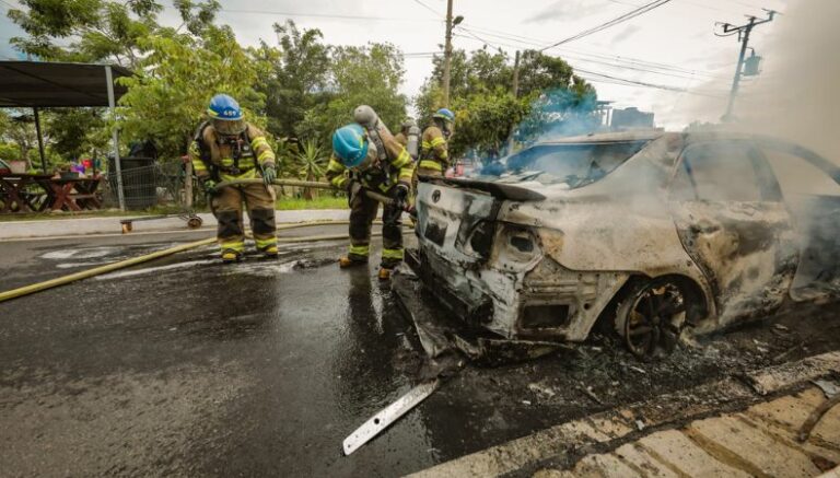 En información de última hora, elementos de Bomberos atendieron el caso de un vehículo que se incendió sobre la calle Flor de Fuego, en el distrito de Tonacatepeque, ubicado en San Salvador Este.