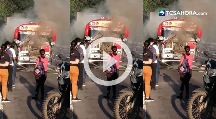 En información de última hora, un bus en llamas fue controlado a tiempo por una pipa de agua que se movilizaba en la carretera Panamericana Los Chorros, en el tramo que conduce hacia Santa Tecla.