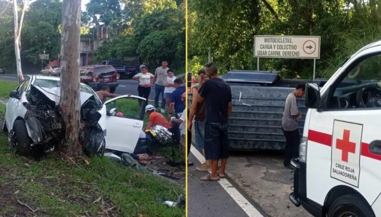 Un segundo percance vial fue atendido, de igual manera, por Cruz Roja Salvadoreña (seccional Cojutepeque) en el Km 46 de la carretera Panamericana, Santo Domingo, San Vicente.