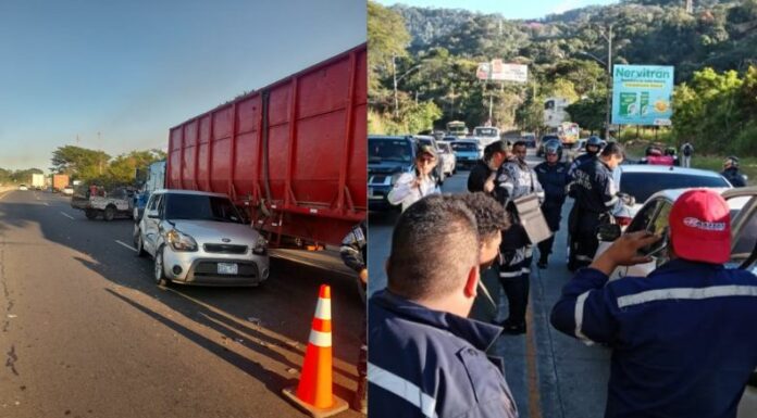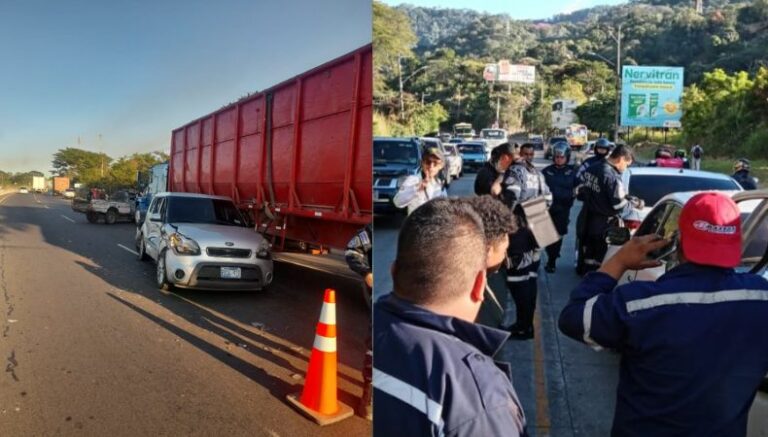 Asimismo, sobre el km 21 de la carretera Panamericana, en dirección al tramo de Los Chorros, en el sentido que conduce hacia San Salvador, se ha registrado otro múltiple accidente. En el percance vial, una persona resultó con lesiones leves y se reportan daños materiales.