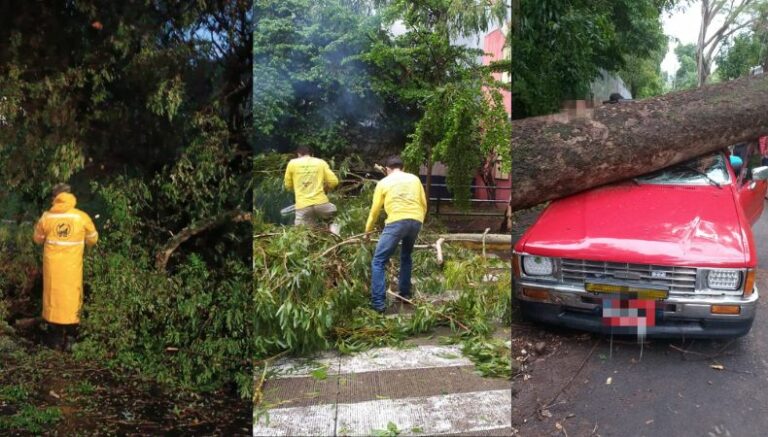 - 6:29 p. m.: Se reportó un árbol caído sobre la 3ª avenida Norte, Antiguo Cuscatlán, La Libertad.
