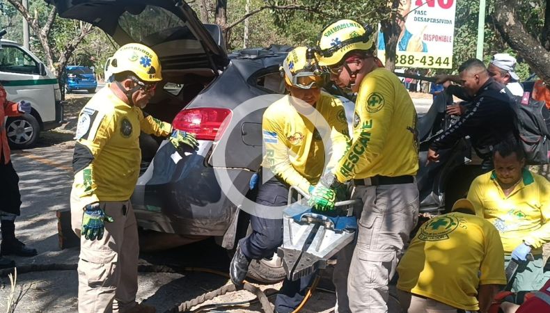 Los equipos de rescate confirman que hay tres lesionados entre ellos, un menor de edad y una persona fallecida. Los rescatistas trabajaron en la extracción de las personas atrapadas en el auto.