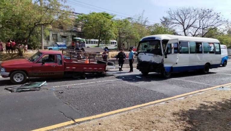 En horas de la mañana, las autoridades del Viceministerio de Transporte (VMT) atendieron un siniestro automovilístico sobre el km 21 de la carretera Panamericana, en el tramo que conduce de Santa Ana hacia San Salvador, a la altura de Colón.