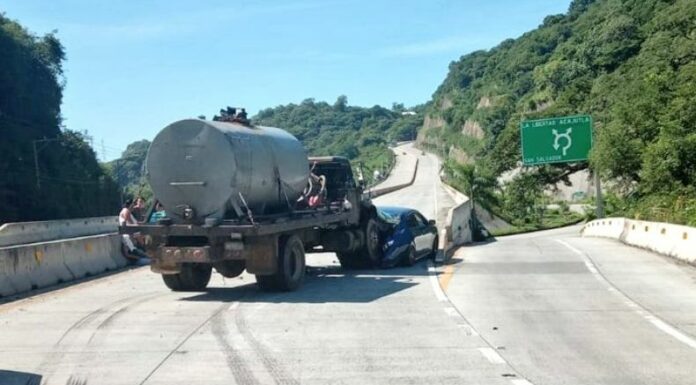 Un fuerte accidente de tránsito se reporta en el kilómetro 30 de la carretera al Puerto de La Libertad, en dirección hacia Surf City. En el siniestro, una pipa chocó con un vehículo particular que circulaba en la vía.