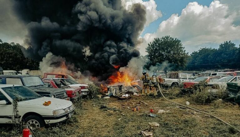 Un incendio generado en un depósito de chatarra y vehículos en desuso, ubicada en la colonia San Isidro, Tecoluca San Vicente, fue controlado por personal de bomberos.