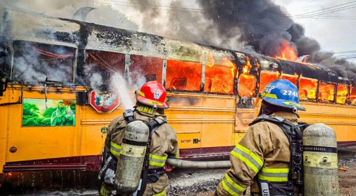 En información de última hora, elementos del Cuerpo de Bomberos sofocaron un incendio de un autobús del transporte público de la ruta 30. Este hecho ocurrió sobre la calle antigua hacia Zacamil, Mejicanos, San Salvador.