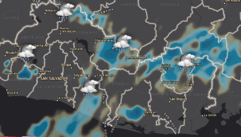 Además, se registran lluvias débiles en sectores de la zona oriental y en los departamentos de San Vicente, Cabañas y La Libertad. Se desplazan al suroeste.