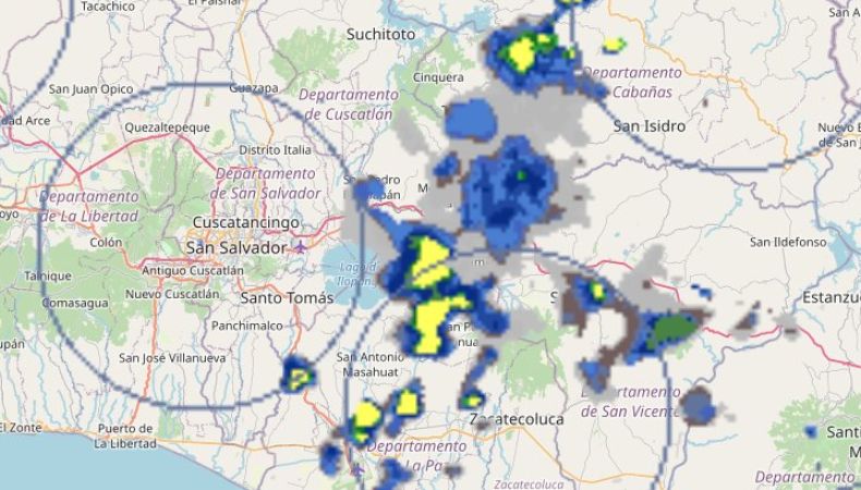 Además, monitorean las lluvias y tormentas sobre Ilobasco, Sensuntepeque, norte de San Vicente, continúan moviéndose en dirección suroeste y se prevé que alcancen el Área Metropolitana de San Salvador en el transcurso de la próxima hora y media.