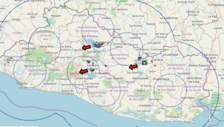 Esta noche se registran tormentas fuertes en Santa Ana y al norte de La Libertad. Lluvias en Cuscatlán y Cabañas. Se desplazan al suroeste.