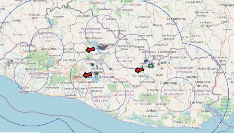Además, se registran tormentas en los alrededores del Embalse Cerrón Grande y al norte de San Miguel y Cabañas. También se registran lluvias aisladas en las cercanías del Área Metropolitana de San Salvador, según informa el Observatorio del Ministerio de Medio Ambiente y Recursos Naturales (MARN).