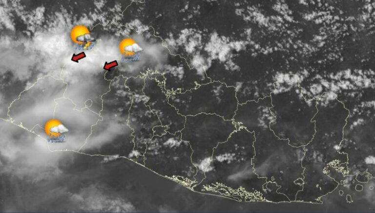 Esta tarde persisten tormentas y lluvias al norte de Santa Ana, alrededores de Nueva Concepción y sur de Sonsonate, según informa el Observatorio del Ministerio de Medio Ambiente y Recursos Naturales (MARN).