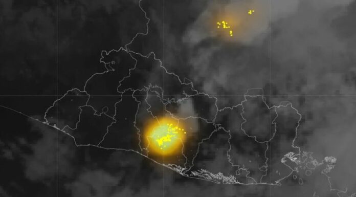 Esta noche se observan lluvias y tormentas con abundante actividad eléctrica y ráfagas de viento en el norte del departamento de La Paz, ingresando a San Salvador, siendo de mayor intensidad en el sur del Área Metropolitana de San Salvador. En la zona oriental y paracentral se registran lluvias.