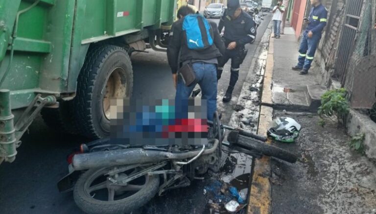En información de última hora, la Policía Nacional Civil (PNC) reportó un accidente de tránsito en el que una motociclista resultó lesionada, luego de ser impactada por un camión recolector de desechos sólidos. Este hecho se registró sobre el bulevar San Bartolo, Ilopango.