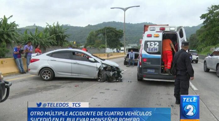 En horas de la mañana se registraron dos múltiples percances viales sobre el bulevar Monseñor Romero. En el primer accidente de tránsito se vieron involucrados cinco vehículos.