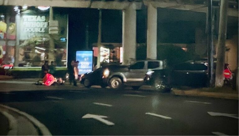 A las 8:10 pm, un motociclista lesionado en la calle, tras choque con vehículo. El hecho ocurrió es en las inmediaciones del redondel Masferrer.