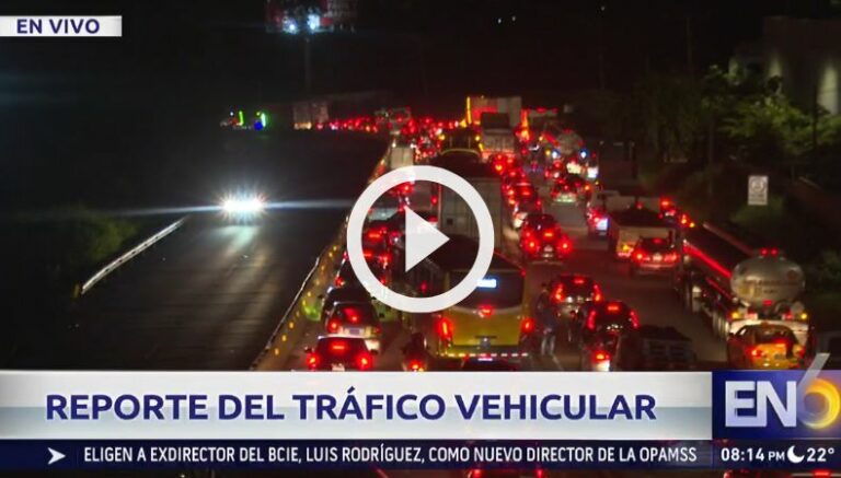 Esta noche de viernes, se registra mucha carga vehicularen la carretera Panamericana, a la altura de la salida de Santa Tecla, en dirección hacia el tramo de Los Chorros, Occidente del país.