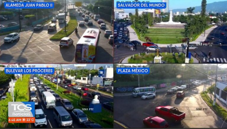 A las 6:46 de la mañana así es el tráfico desde el Bulevar de Los Próceres, Alameda Juan Pablo II, Salvador del Mundo y redondel Plaza México.