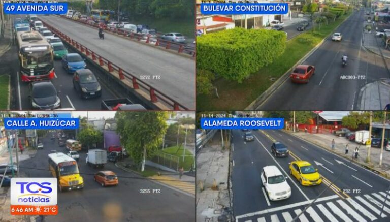A las 7:52 así es el tráfico desde el Árbol de la Paz, Redondel Plaza México, 75 Avenida Norte y calle Primera Calle Poniente.