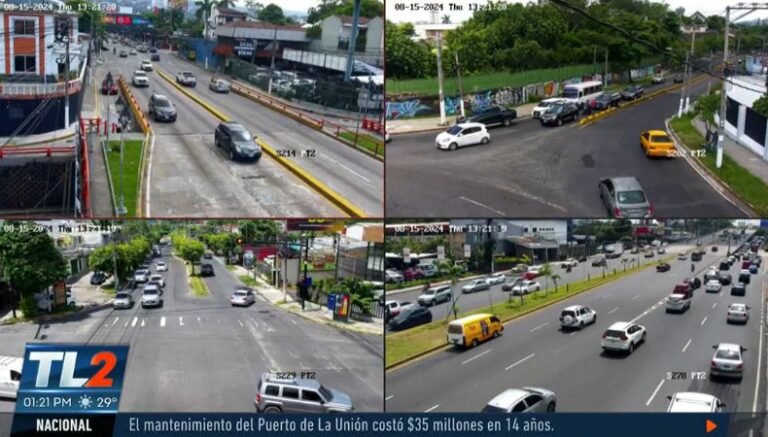 A la 1:36 de la tarde así es el tráfico en el Bulevar Constitución, Alameda Juan Pablo II, Plaza Salvador del Mundo y Avenida Bernal.