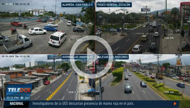 A la 1:34 así, es el tráfico em calle Antigua a Huizúcar, 49 Avenida Sur, Salvador del Mundo y Bulevar Los Próceres.