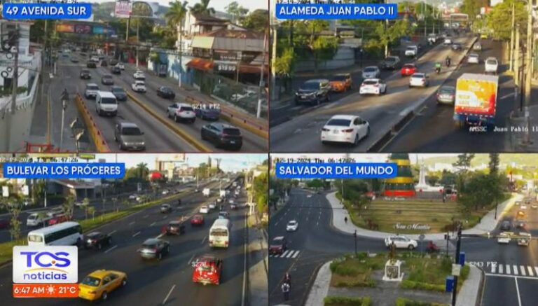 A las 6:47 de la mañana, así es el tráfico desde el Bulevar de Los Próceres, Alameda Juan Pablo Segundo, 49 Avenida Sur y Salvador del Mundo.