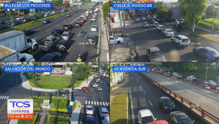 A las 6:55 de la mañana, así es la carga vehicular desde Los Próceres, Calle Antigua Huizúcar, Salvador del Mundo y 49 Avenida Sur.