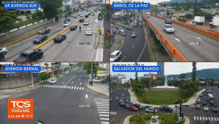 A la 1:43 Así es la carga de tráfico desde El Salvador del Mundo, Los Próceres, Avenida Jerusalén y 49 Avenida Norte: