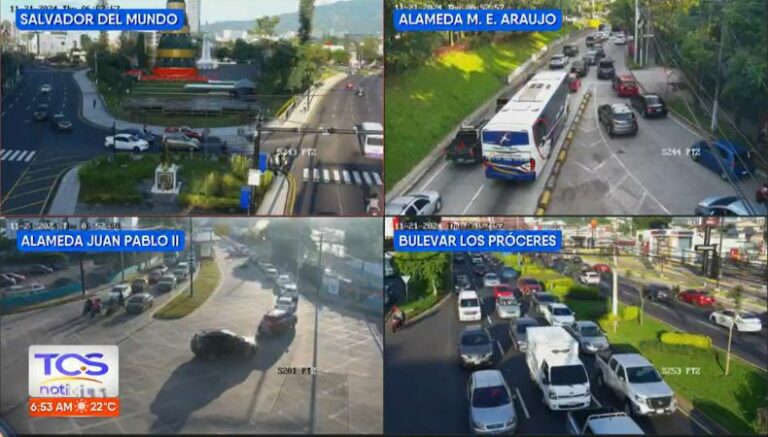 A las 7:20 de la mañana, así es el tráfico desde el Árbol de la Paz, 49 Avenida Sur, Bulevar Constitución, Paseo General Escalón.