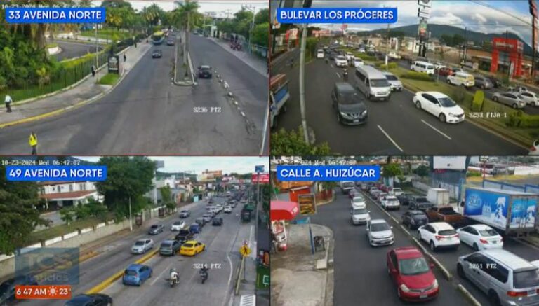 A las 6:45 de la mañana, así es el tráfico desde la 33 Avenida Norte, Bulevar Los Próceres, 49 avenida Norte y calle Antigua a Huizúcar.