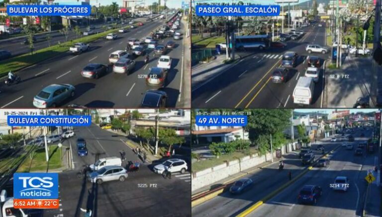 A las 6:49 de la mañana, así es la carga vehicular desde Los Próceres, Paseo General Escalón, Bulevar Constitución y 49 Avenida Norte.