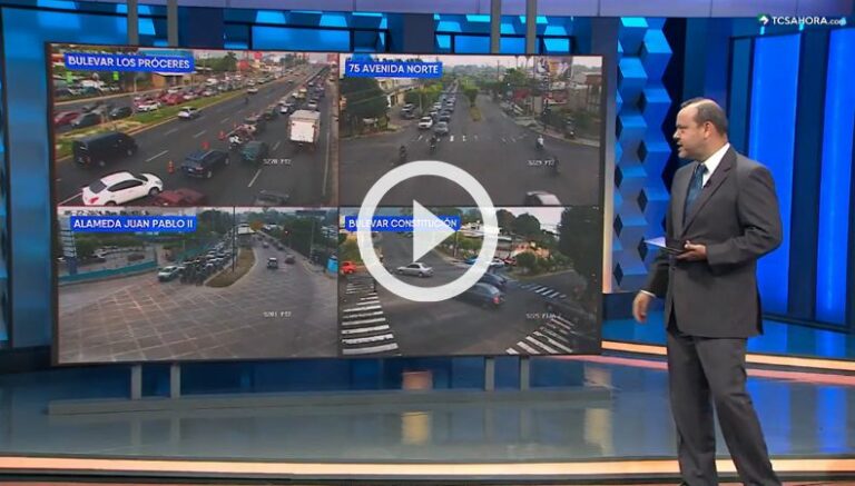 Unos minutos antes de las 8:00 a.m. este es el panorama del tráfico en las zonas de la plaza al Divino Salvador del Mundo, el Paseo General Escalón, la colonia San Antonio Abad y el bulevar Tutunichapa.