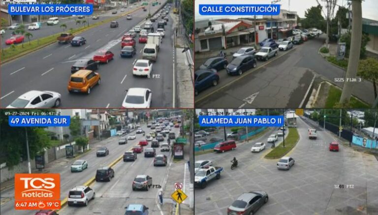 A las 6:47 de la mañana así es el tráfico desde el Bulevar Los Próceres, Bulevar Constitución, 49 Avenida Sur y Alameda Juan pablo II.