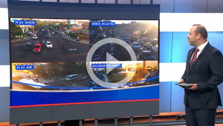 A esta hora de la mañana, le contamos el tráfico que se tiene en la 75 Avenida Norte, Árbol de La Paz, 25 Avenida Sur, Salvador del Mundo.