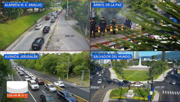 A las 7: 56 de la mañana así es el último reporte del trafico desde las cámaras de videovigilancia de San Salvador: