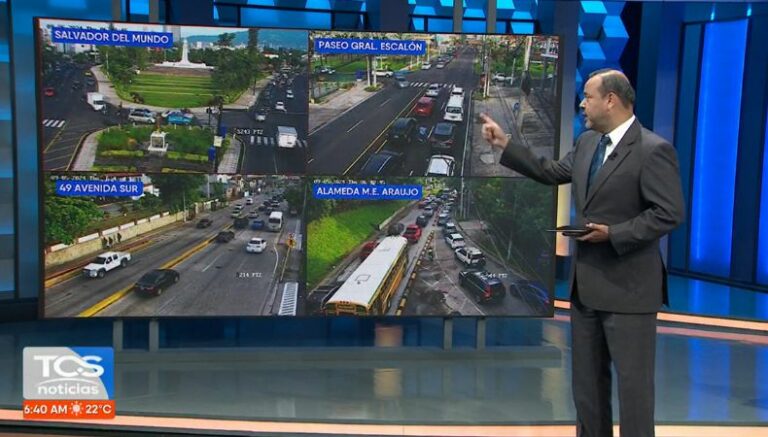 A la 1:37 así, es la carga del tráfico en la Alameda Juan Pablo II, Manuel Enrique Araujo, Calle San Antonio Abad y Los Próceres.