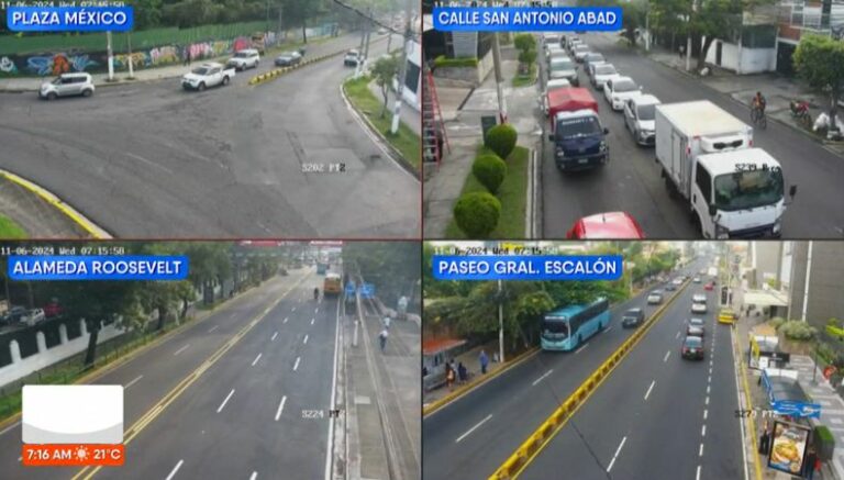 A las 7:15 de la mañana así es la carga vehicular desde la Plaza México, Calle San Antonio Abad, Alameda Roosevelt y Paseo General Escalón.